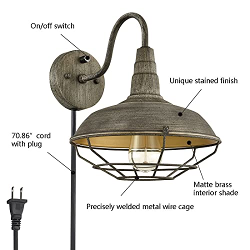 Farmhouse stained plug-in gooseneck wall light wall sconce with cord and switch,mold color