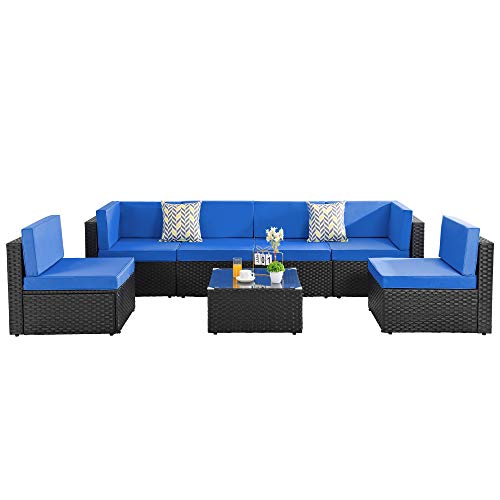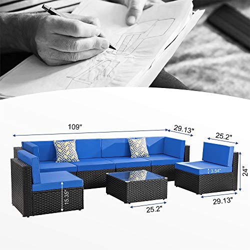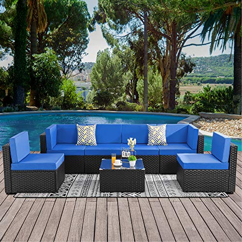 Create a beautiful outdoor seating area that you have all the time dreamed of with this 7pcs patio furniture sofa set from Walsunny. Constructed from a lightweight steel frame and hand woven from the pe black resin wicker fiber meticulously designed to provide you with the most comfortable and relaxing outdoor lounging experience.