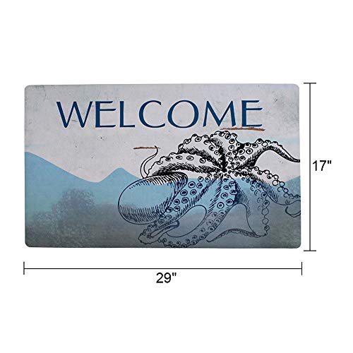 Entry Way Indoor Out of doors Welcome Mat with Non Slip Backing, Rectangular Octopus Door Mat Rug for Entry, Garage, Patio,