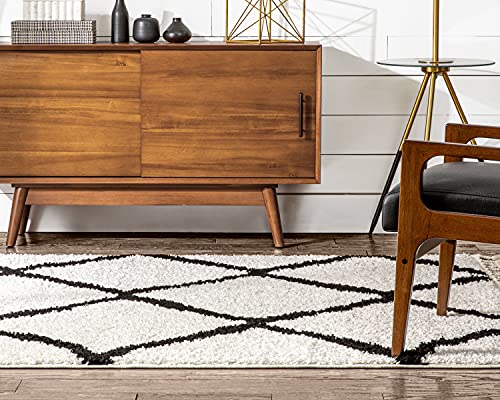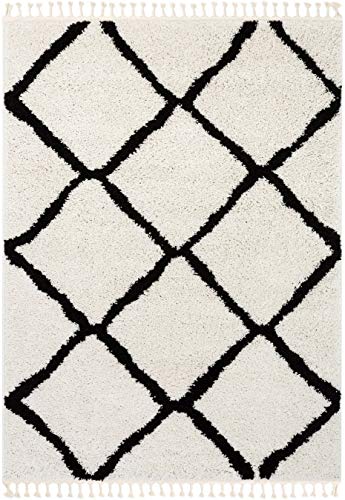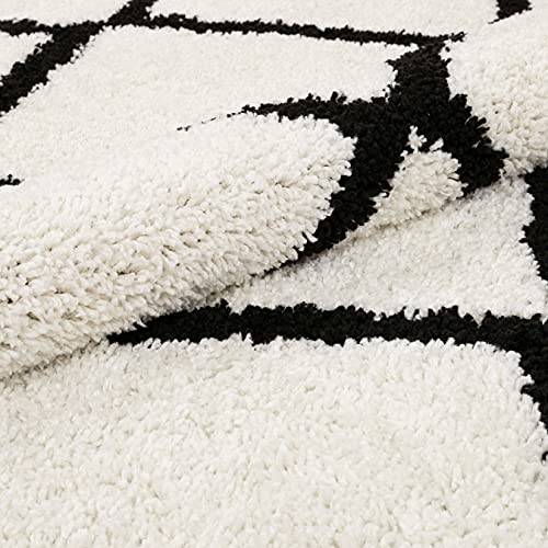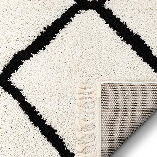 A soft, cozy shag rug woven in a Moroccan lattice pattern. The timeless design and sharp black and white colors mean it’s going to fit in any space.