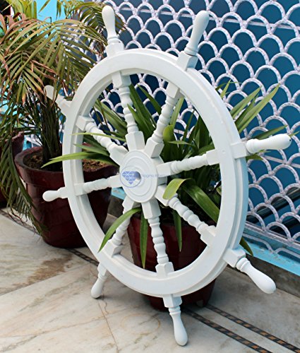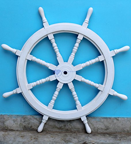 or a different take on ship wheels, I took this one and white washed it. It was originally a brown ship wheel, which is why some of that color bleeds through. I can also go with a black ship wheel, because great accents probably looks better than brown. Pictures might be of wrong size but you will get exactly the same product as selected from the given variation options.