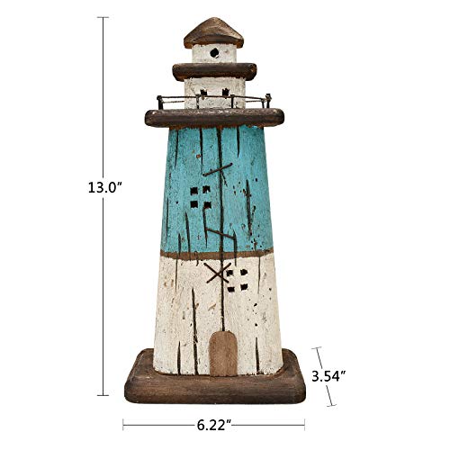 LIGHTHOUSE FIGURINE DIMENSIONS: Wooden lighthouse decoration measures 13″ X 6.22″ X 3.54″, perfect size and height to sit down on a shelf, mantel, cupboard, night stand, end table, dresser and countertop. Perfect for lake house, beach house, beach room, sweet addition to enliven any room.