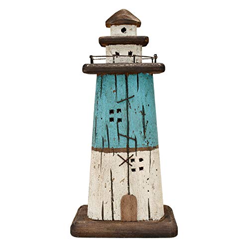 LIGHTHOUSE THEMED DECORATION: Rustic wood lighthouse decor is a detailed lighthouse replica with great craftsmanship and handmade rustic weathered wood look, imperfections adds to its unique and charm. Nice accent piece works great with costal decor, beach decor, ocean decor, seaside decor, beach decor.