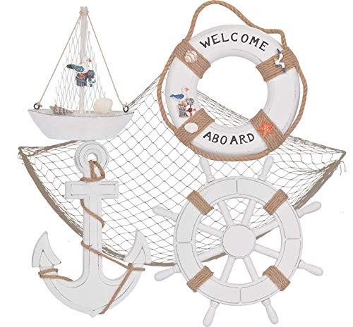 Meant2ToBe have all it takes to come up with a sense of belonging even when your don’t seem to be at sea. Our complete set of 4 sailing accessories which comes in Wooden Nautical Lighthouse Anchor Wall Hanging Ornament Plaque, Nautical Beach Wooden Boat, Ship Steering Wheel Fishing Net, Shell, White Fish Home Wall Decor, Nautical Sailboat Mediterranean Mini Wooden Rudder Sailing Ship Table Display Decor and Wooden Nautical Life Ring Wall and Door Hanging Ornament Plaque, Welcome ABROAD. This accessories are unique, suitable gift and decorative item and they stand out from every other decor they are simply the BEST!