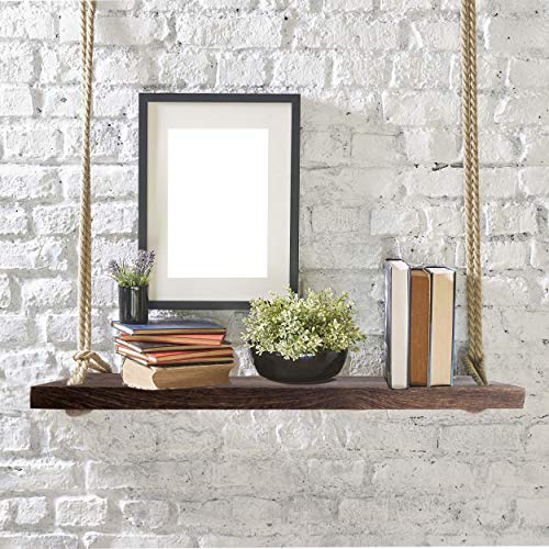 COMPLETE SET OF 2 SHELVES – The package include 2 torched finish dark brown floating shelves and 4 mounting cup hooks for easy hanging to a wall or ceiling