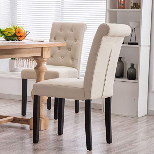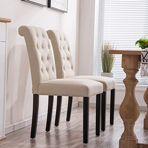 YEEFY Fabric Habit Solid Wood Tufted Parsons Dining Chair (Set of 2)