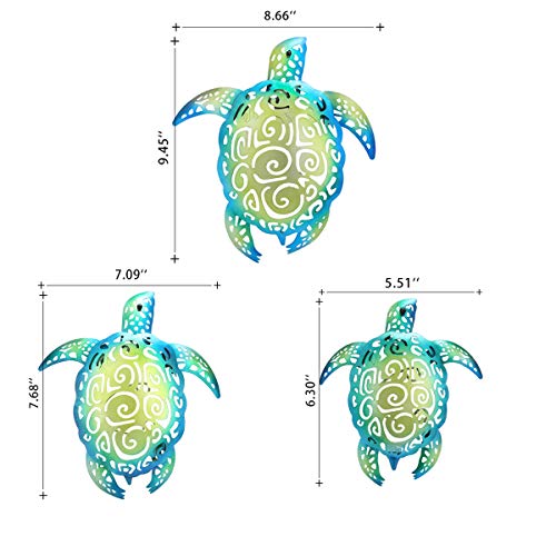 Make sure this fits by entering your model number. Delicate beach theme turtles decor has been masterfully crafted from metal. Giving the perception of lovely creatures that have rest on your wall. Use hand painting coat for the ultimate durability and rust protection, give it long-lasting color. Even expose in the sunlight or rain, they still the same.