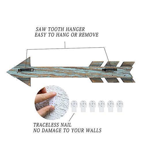 Gift Box Package – 6 traceless nail in the package , no damage to your walls.This decorative wood arrow wall decor features a dimensional construction to be able to add a unique touch to your living room, bedroom.
