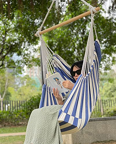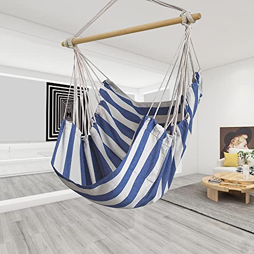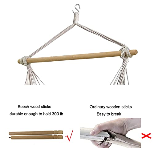 Top quality material: The hammock chair is used high density polyester, durable for daily use. And the spreader bar is used beech wood, it’s stronger than normal wood.