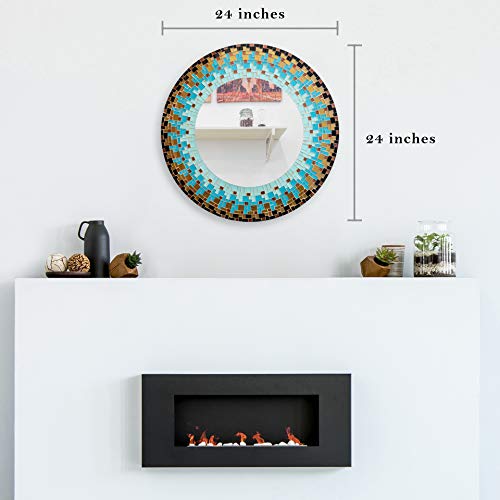 Zorigs wall art mirrors are a mosaic masterpiece that brings an exquisite decorative accent to any wall in your house! Handmade with the very best quality craftsmanship, this Zorigs mirror has a strong, durable wood base that’s easy to hang. It’s meticulously adorned with hundreds of small square and rectangle glass mosaic tiles in black, brown, gold, turquoise, and aqua. Its vibrant colors make it a versatile piece to place in any room, whilst it steals the spotlight with its spectacular design and large round shape. Our mirrors also make a very good gift – present this as a housewarming, engagement, wedding or birthday gift. Measurements are 23.6” diameter and 0.6” thickness. Mount this mirror into your shopping cart now and let it make a striking, yet charming commentary as a part of your house decor!
